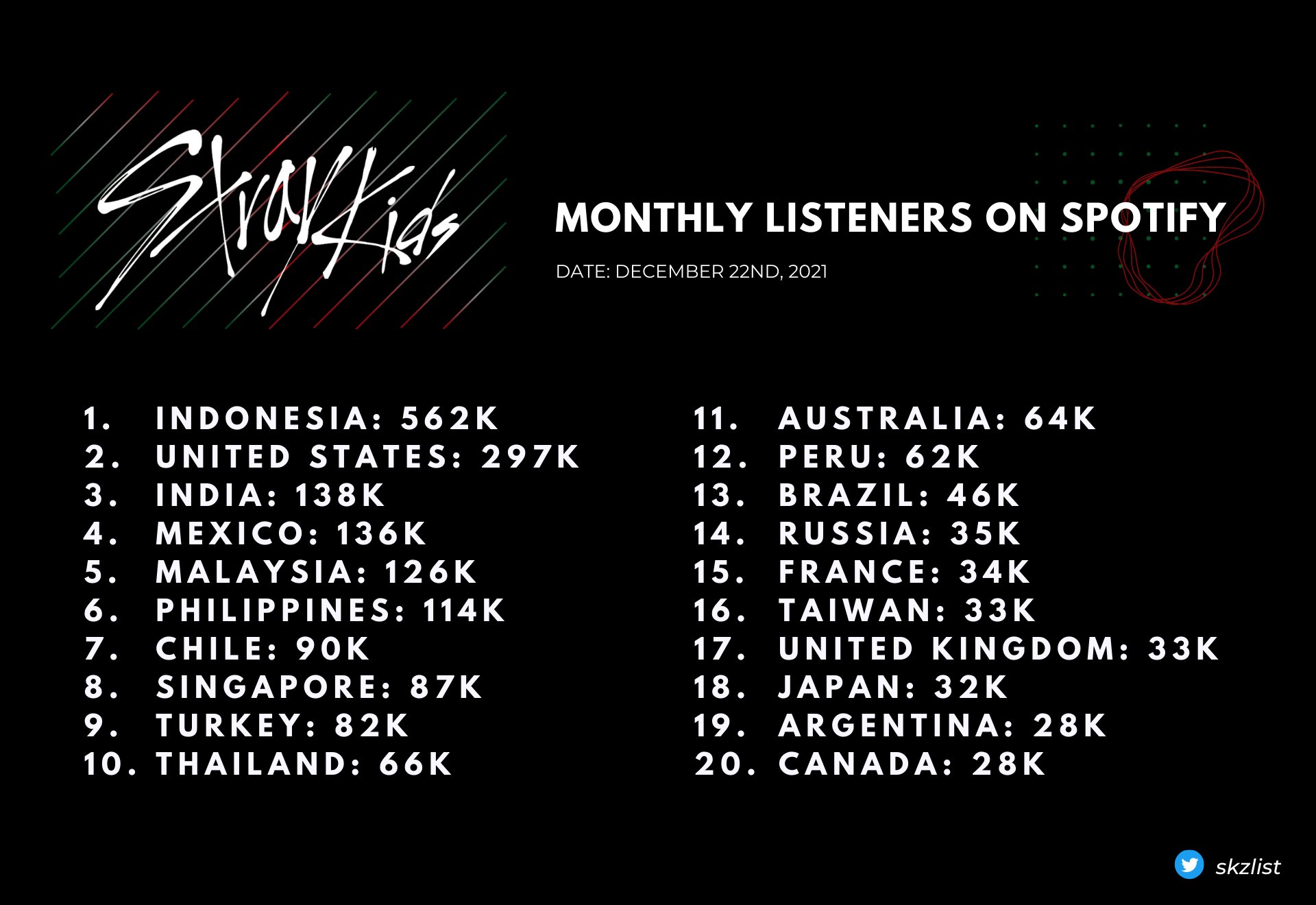Stray Kids Spotify On Twitter Top 20 Countries With Most Stray Kids Monthly Listeners On Spotify Https T Co R9rzqetedt Stray Kids Straykids 스트레이키즈 Https T Co Aaswtk4iau Twitter